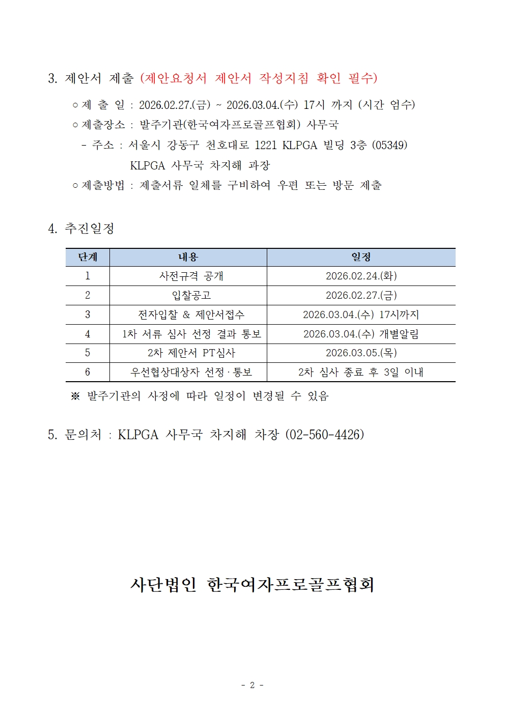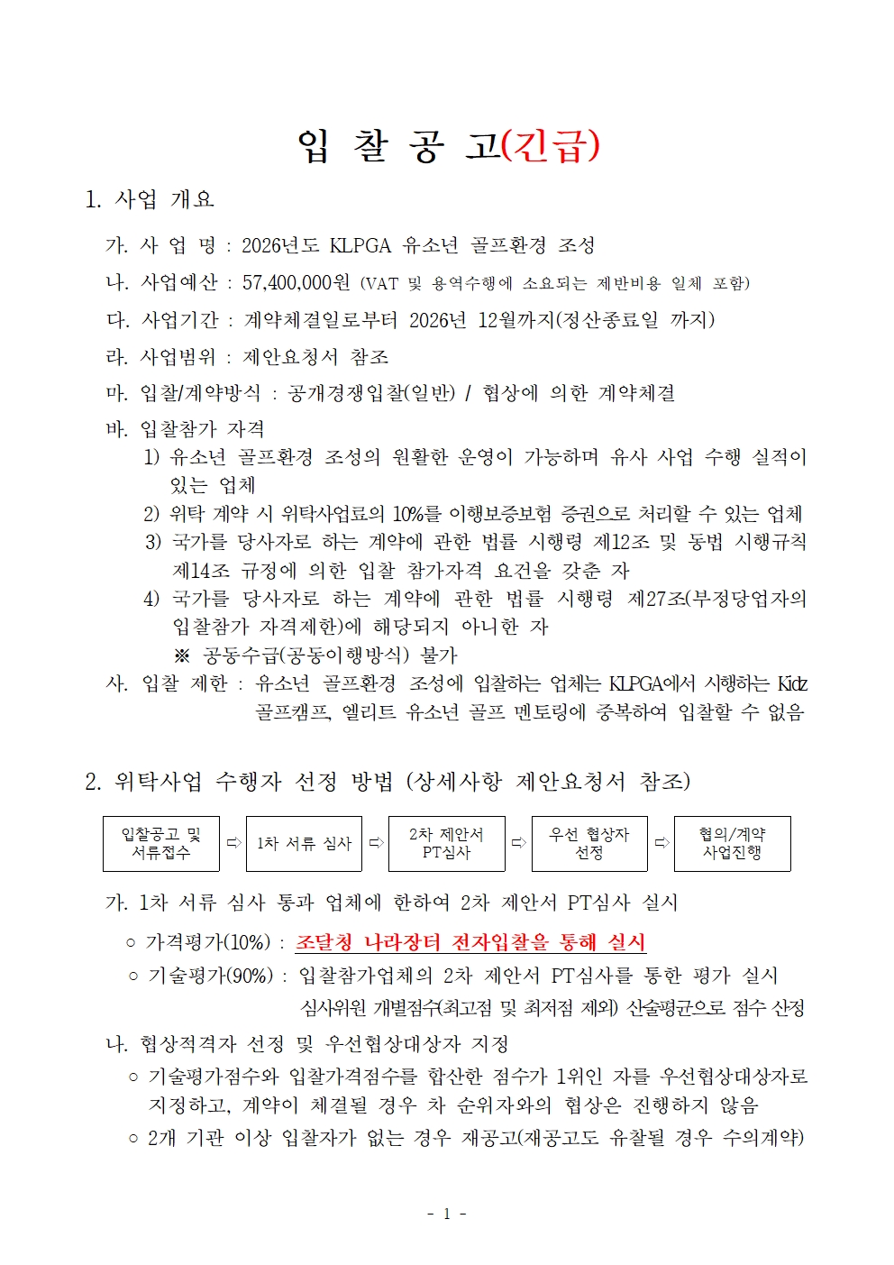 2026년 KLPGA 유소년 골프환경 조성 위탁업체 입찰 공고