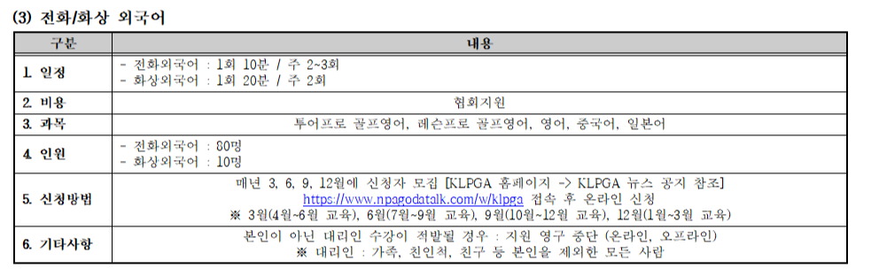2026년도 04월 ~ 06월 KLPGA 회원맞춤형교육 안내