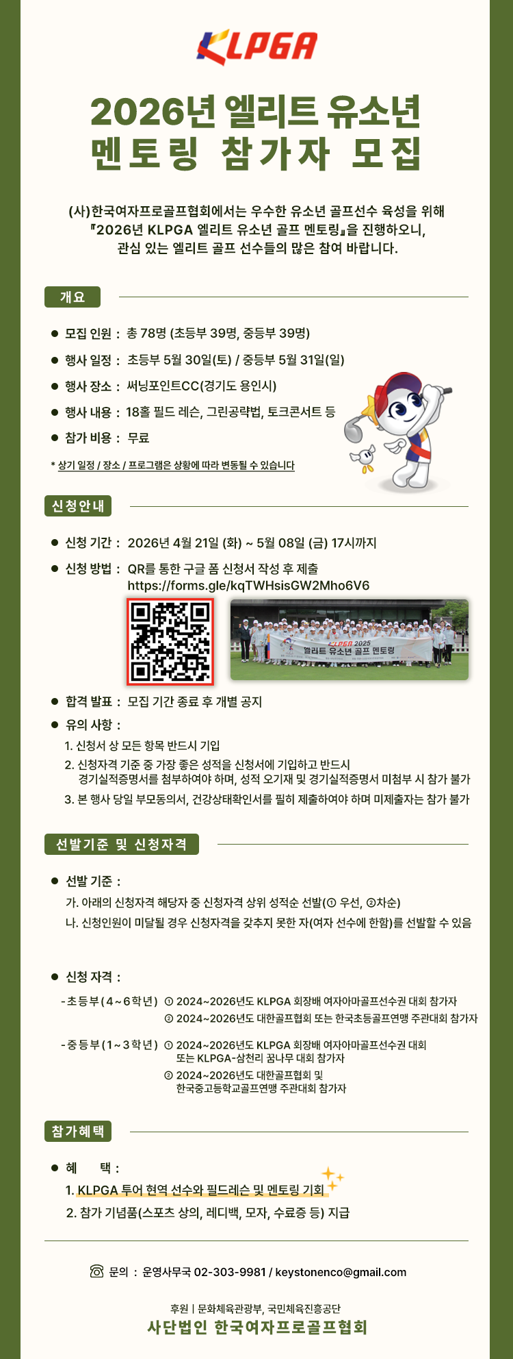 2026년도 KLPGA 엘리트 유소년 골프 멘토링 참가자 모집